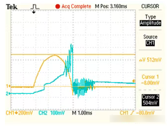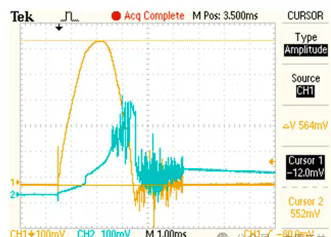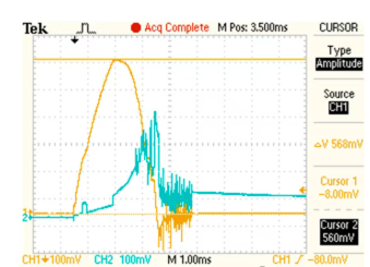 ● Naranja (CH1): voltaje de recuperación/forma de onda TRV
